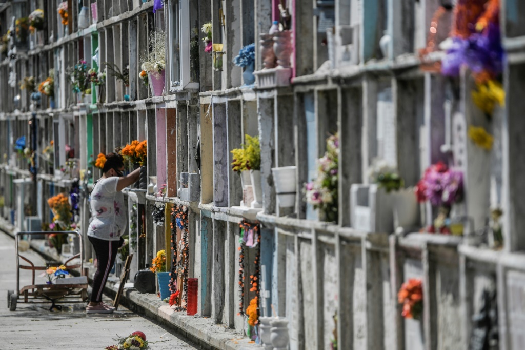 - © 2020 AFP | Crée le 29.10.2020 à 23h45 | Mis à jour le 29.10.2020 à 23h50ImprimerUne femme décore la tombe d'un proche avant le "Jour des morts" au cimetière de Nezahualcoyotl, le 28 octobre 2020 au Mexique PEDRO PARDO-AFP