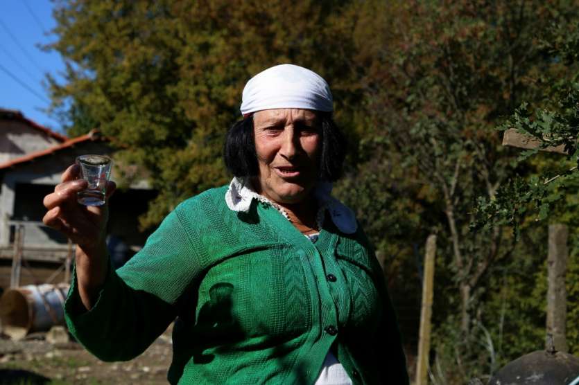 Cela fait quatre décennies que l'Albanaise Vitore Lufi distille le raki au fond de son jardin. L'eau de vie traditionnelle est créditée de toutes les vertus par ses nombreux amateurs et en cette année de pandémie, et surtout celle de remonter le moral.