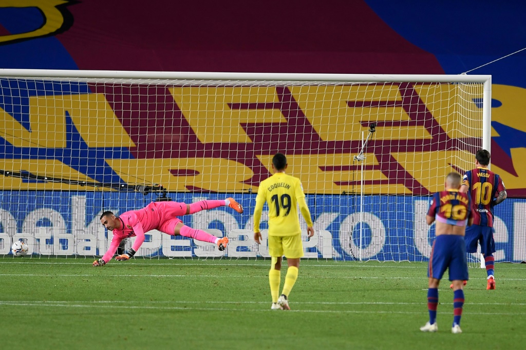 - © 2020 AFP | Crée le 28.09.2020 à 19h01 | Mis à jour le 28.09.2020 à 19h05ImprimerLionel Messi transforme un penalty contre Villarreal, dans le large succès du Barça à domicile, le 27 septembre 2020 au Camp Nou Josep LAGO-AFP