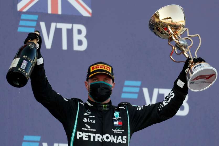 - © 2020 AFP | Crée le 28.09.2020 à 01h14 | Mis à jour le 28.09.2020 à 01h15ImprimerLe Finlandais Valtteri Bottas (Mercedes) vainqueur du GP de Russie, à Sotchi, le 27 septembre 2020 YURI KOCHETKOV-POOL/AFP