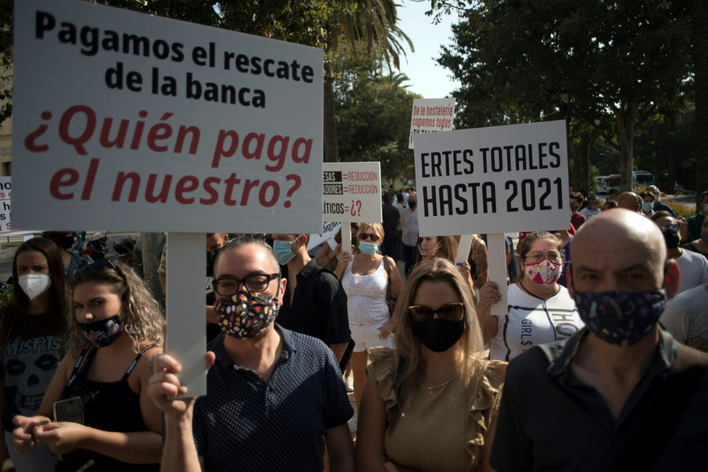 - © 2020 AFP | Crée le 07.10.2020 à 13h05 | Mis à jour le 07.10.2020 à 13h10ImprimerManifestation contre les restrictions anti-Covid-19 imposées au secteur de la restauration en Espagne, le 22 septembre 2020 à Malaga JORGE GUERRERO-AFP