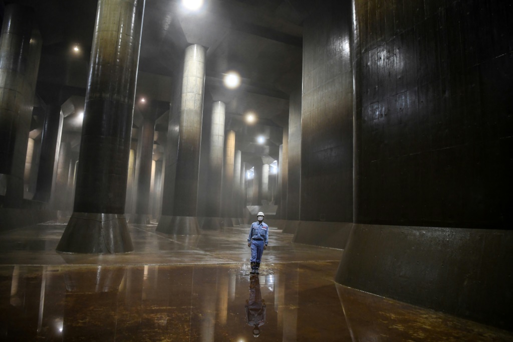 On le surnomme le "Parthénon" souterrain du Japon: un complexe en béton aux dimensions pharaoniques destiné à protéger Tokyo et ses environs d'inondations catastrophiques, dont le risque s'accroît à mesure que le changement climatique s'accélère, selon des experts.