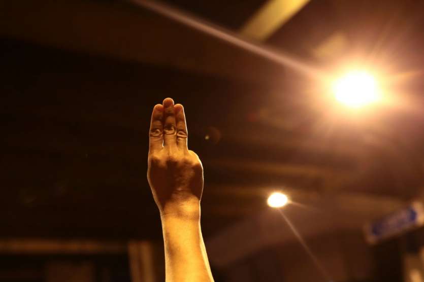 - © 2020 AFP | Crée le 18.10.2020 à 22h15 | Mis à jour le 18.10.2020 à 22h20ImprimerLes militants pro-démocratie thaïlandais, le 18 octobre 2020 à Bangkok ont adopté les trois doigts levés du geste de défiance de la série Hunger Games Jack TAYLOR-AFP