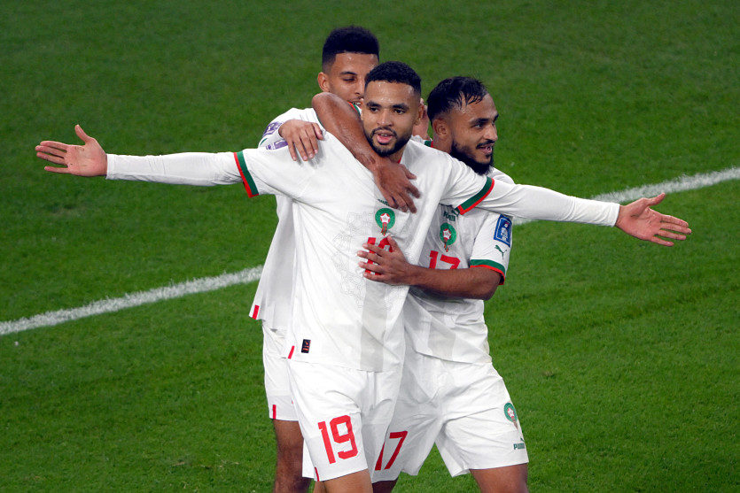 L'attaquant Youssef En-Nesyri (C) et les deux milieux de terrain Azzedine Ounahi (L) et Sofiane Boufal de l'équipe marocaine, célèbrent leur deuxième but face au Canada à Doha. AFP - AFP or licensors - PAUL ELLISL'équipe d'Hakim Ziyech, buteur contre le Canada, sera accompagnée par la Croatie, qui a résisté aux assauts de Romelu Lukaku (0-0). L'attaquant belge, entré en début de deuxième période, a multiplié les loupés et a fini le match frustré et en colère.