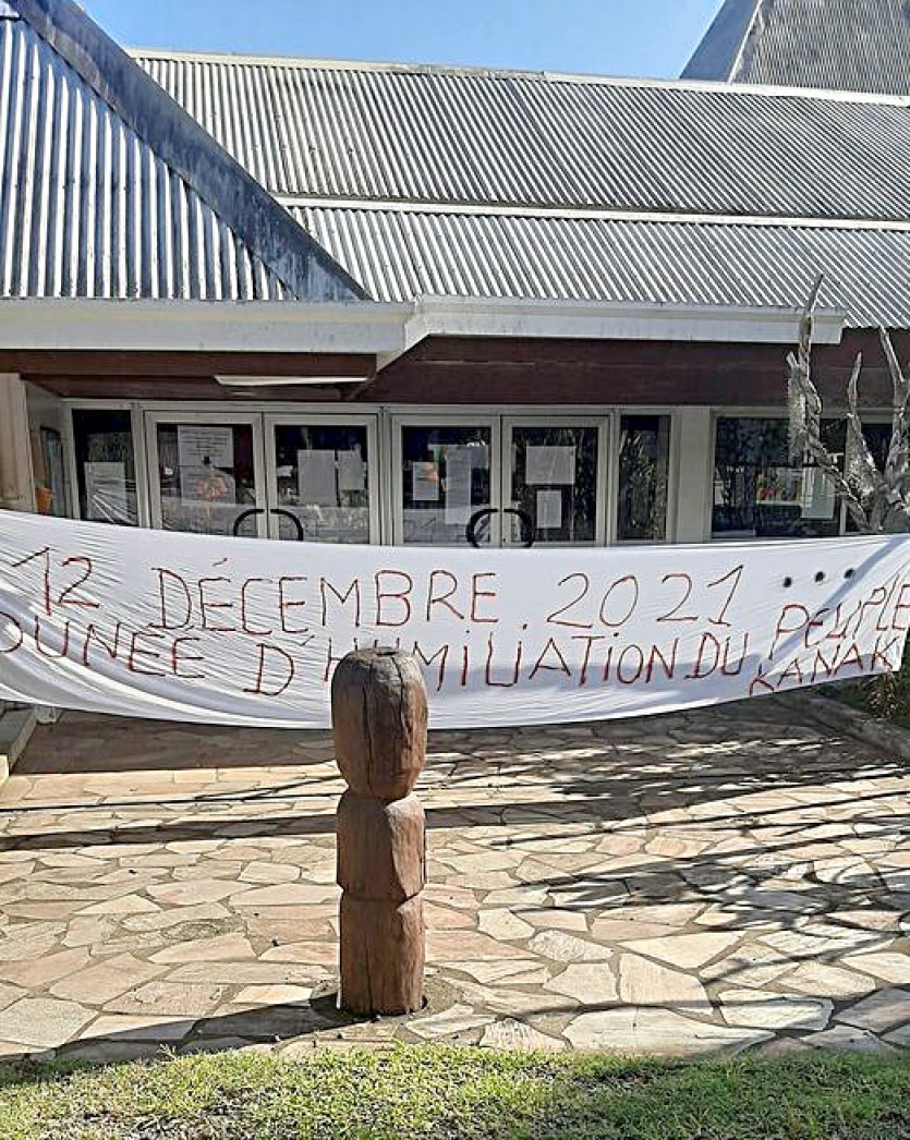 - Isabelle Payat | Crée le 12.12.2022 à 10h05 | Mis à jour le 12.12.2022 à 10h16ImprimerLa mairie de Canala, ce lundi 12 décembre 2022. Photo Isabelle PayatUne banderole "12 décembre 2021, journée d’humiliation du peuple Kanak" a été déployée à l’entrée de la mairie.