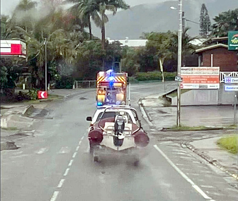 Après avoir eu la RT1 complètement bloquée samedi soir avec de nombreux radiers impraticables, et trois interventions de pompiers pour véhicules piégés dans les eaux, une nouvelle inondation est en cours sur la RT1, au niveau du virage de la Cigogne, à la sortie nord du village.