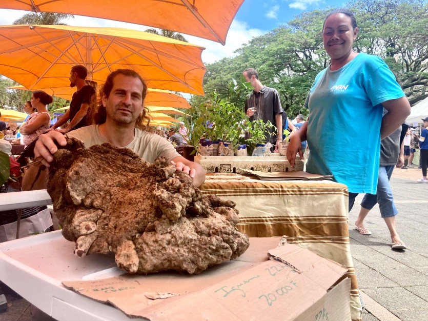 Laurent Edo, producteur au mont-Mou, vend une igname... de 22 kilos. Photo Anthony TejeroMERCI DE VOUS IDENTIFIER