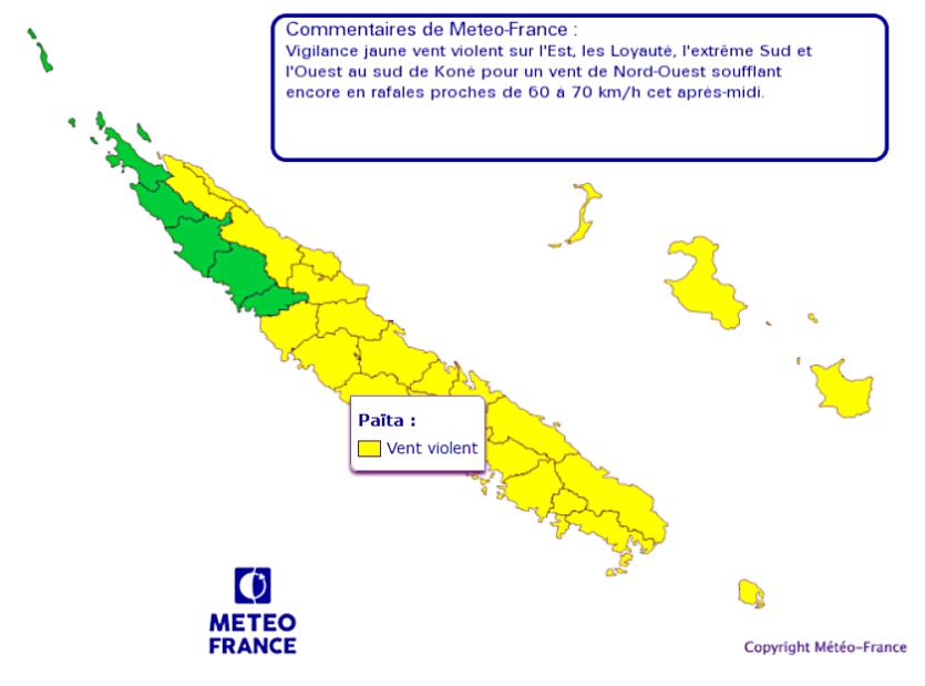 Vingt-sept communes ont été placées en vigilance jaune. Seulement Bélép, Poum, Koumac, Kaala-Gomen, Voh et Koné ne sont pas concernés.
