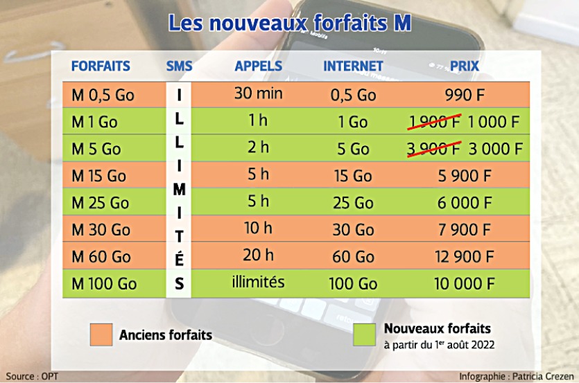 - Prévues initialement pour avril, les nouvelles offres des forfaits M de l’OPT sont disponibles depuis le 1er août. La nouvelle gamme propose des abonnements moins chers, pour plus de données et un débit plus rapide."Même si nous avons pris un petit décalage sur les évolutions tarifaires des forfaits M, du fait de quelques difficultés techniques, nous pouvons vous présenter aujourd’hui leur mise en œuvre concrète", expose le président de l’OPT, Yoann Lecourieux. "Au 1er août, sur 90 000 abonnésIl vous reste 94% de l'article à découvrir.Cet article est réservé aux abonnés.
