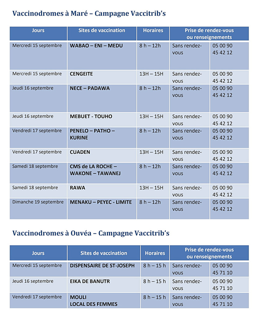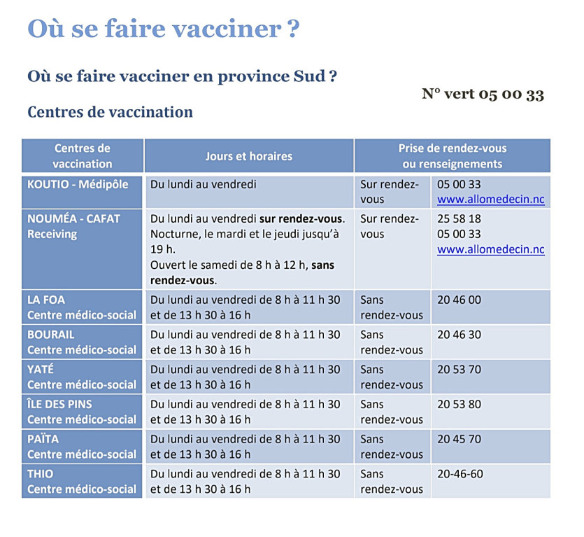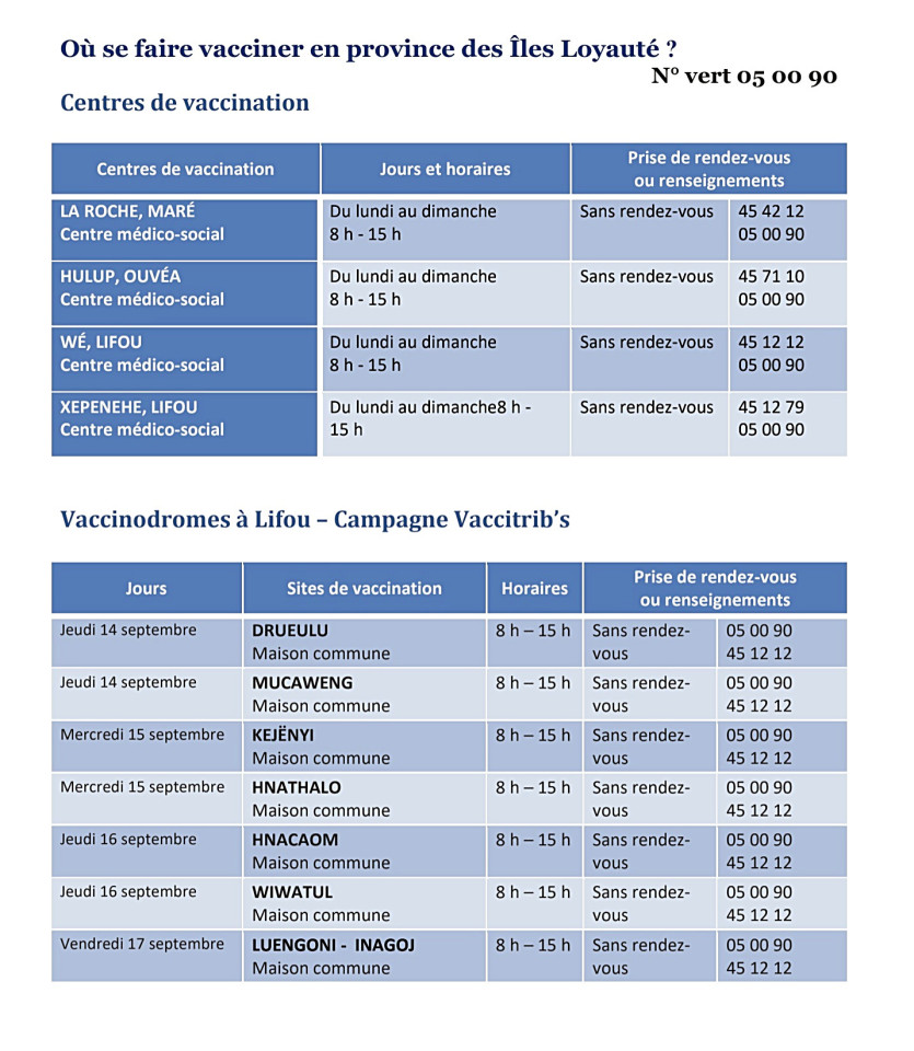 Les lieux de vaccination dans les Loyauté. Capture écran gouv.ncMERCI DE VOUS IDENTIFIER