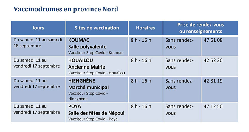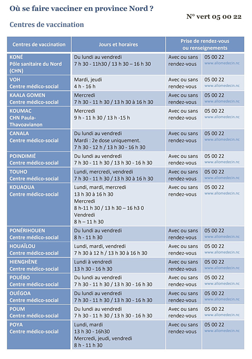Les lieux de vaccination en province Nord Capture écran gouv.nc