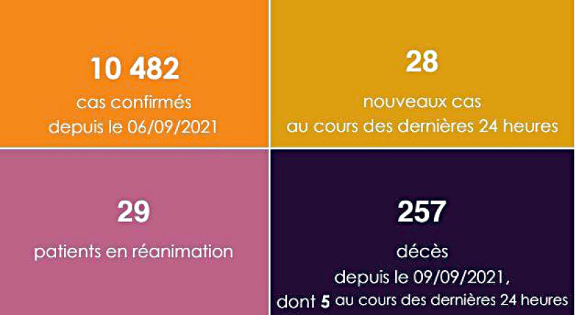 Le dépistage a permis d’identifier 28 nouveaux cas de coronavirus, ce qui porte à 10 482 le nombre total de cas détectés depuis le 6 septembre. "Le nombre de cas actifs est de 732", précise le gouvernement. Le taux d’incidence cumulé sur 7 jours est de 167 pour 100 000 habitants.