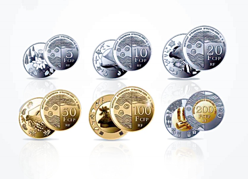 Les nouvelles pièces sont plus esthétiques avec une reprise contemporaine des signes identitaires des trois collectivités françaises du Pacifique, tels qui figurent sur la gamme actuelle des billets et pièces.