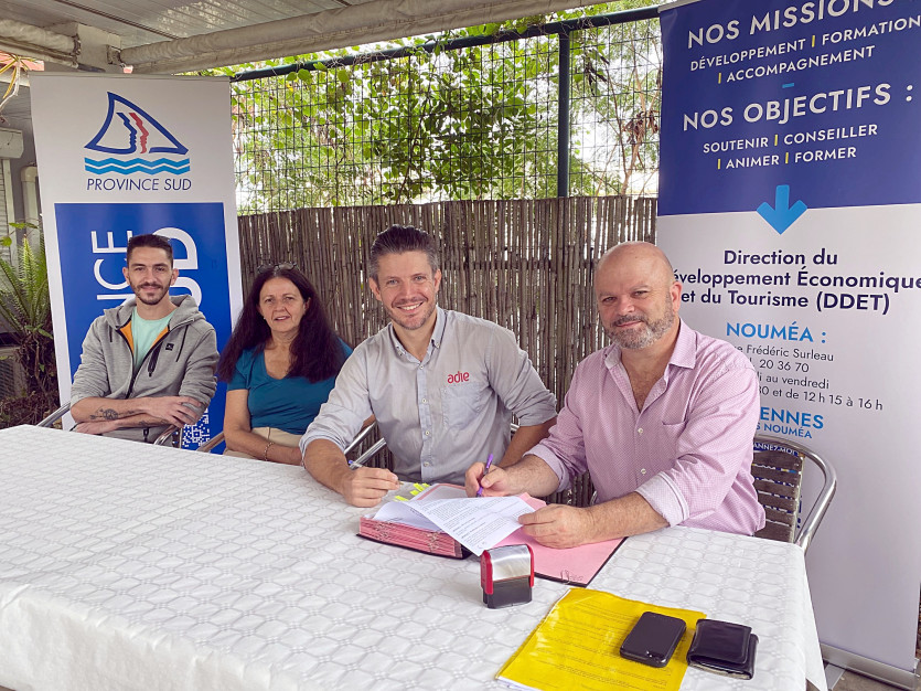 "Une aide sanctuarisée" malgré les difficultés que connaissent les institutions calédoniennes : en signant ce vendredi matin, une convention d’objectifs et de moyens avec l’Association pour le droit à l’initiative économique (Adie), Philippe Blaise, premier vice-président de la province Sud, a rappelé le soutien sans faille apporté à cette association depuis plus de 20 ans. La signature s’est déroulée dans les nouveaux locaux de la Direction provinciale du développement économique et du tourisme, à Nouméa.