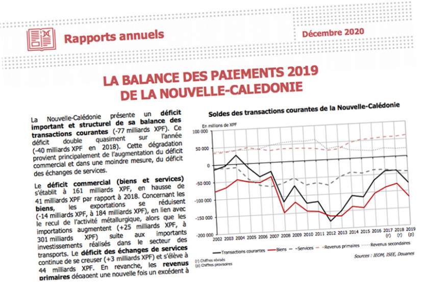 - P. Ch. | Crée le 07.01.2021 à 17h55 | Mis à jour le 07.01.2021 à 18h05ImprimerLe rapport sur la balance des paiements 2019 a été présenté ce jeudi. Document IEOMLes chiffres viennent d’être rendus publics par l’institut d’émission d’outre-mer.