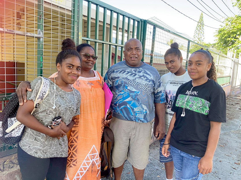 Première rentrée en seconde et à Nouméa pour ces jeunes filles de Maré, ce lundi matin au Lapérouse. Les parents de l'une d'elles ont fait spécialement le déplacement pour les accompagner dans "ce grand changement".