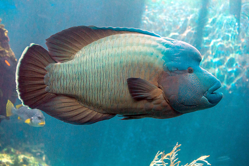Le napoléon est un des plus grands poissons osseux des récifs coralliens. Il peut atteindre 2,30 m de long et peser près de 200 kg.