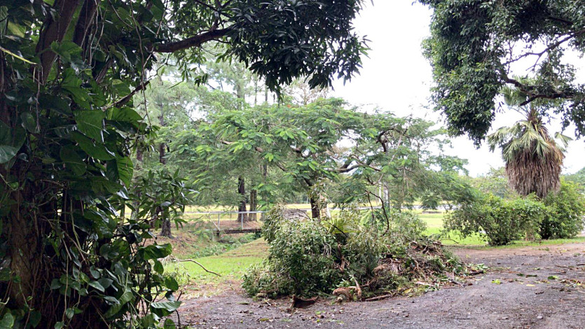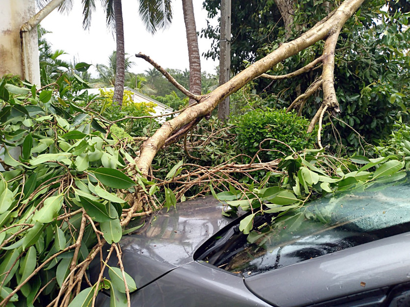 Les chutes d'arbres ont provoqué quelques dégâts à Canala. Photo Gédéon Richard10h : quai Jules Ferry, une embarcation a coulé, les propriétaires ont été secourus par les policiers municipaux de Nouméa, une chaîne de solidarité a été mise en place pour soutenir la famille et pour nettoyer la baie.