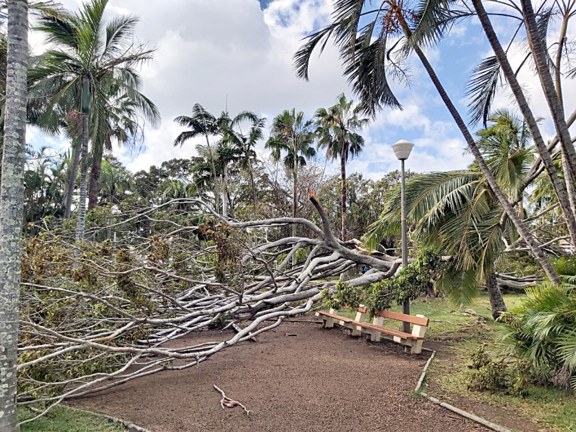 Des dégâts à Port Plaisance après le passage de Niran. Photo Thierry Perron7h40 : de nombreux arbres et des branchages sont tombés, comme dans ce parc, à l'Orphelinat.