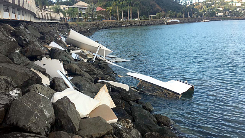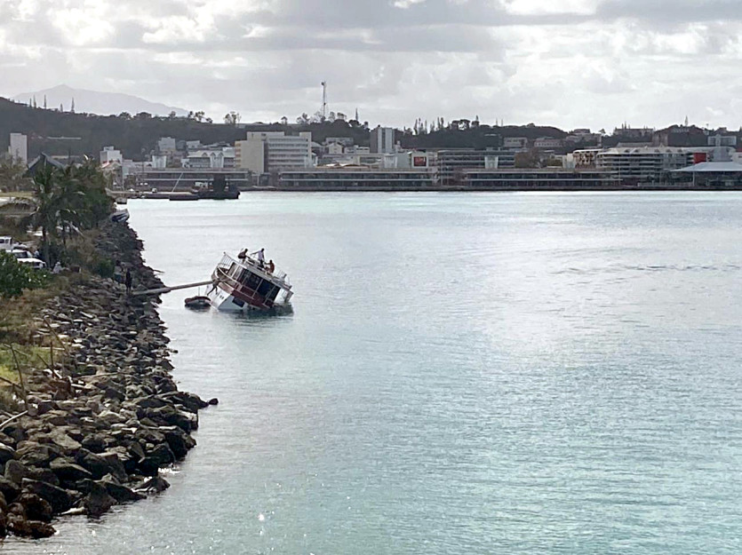 Quai Ferry, une embarcation a coulé. Photo Thierry Perron9h45 : à Nouméa, cinq personnes ont été interpellées pendant le cyclone pour tentative de vols.