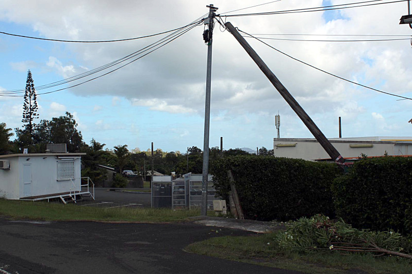Des poteaux électriques sont prêts à s’effondrer à La Coulée (Mont-Dore). Photo Edwige Blanchon"Les réseaux électriques de la commune de Lifou ne sont plus impactés par le phénomène NIRAN à l'heure qu'il est", informe également EEC, qui assure une permanence au 05.36.36 (Numéro vert) pour recueillir toute information.