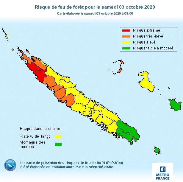 Le déclenchement de cette mesure, le dispositif Prévifeu, est la conséquence du placement en « risque extrême » des communes de Kaala-Gomen et de Koumac. En province Nord, l’ensemble des autres communes est placé en risque « élevé » ou « très élévé ». Ailleurs, seuls Maré, l’île des Pins, Yaté et Dumbéa sont placés en risque « faible à modéré ».