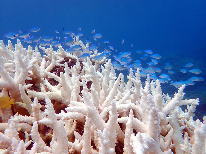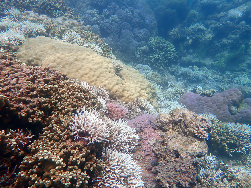 Un corail blanchi n’est pas un corail mort, mais ses apports énergétiques se voient fortement réduits. Si les conditions de stress perdurent, ils peuvent mourir. Photo Sandrine JobDe vastes étendues à Lifou
