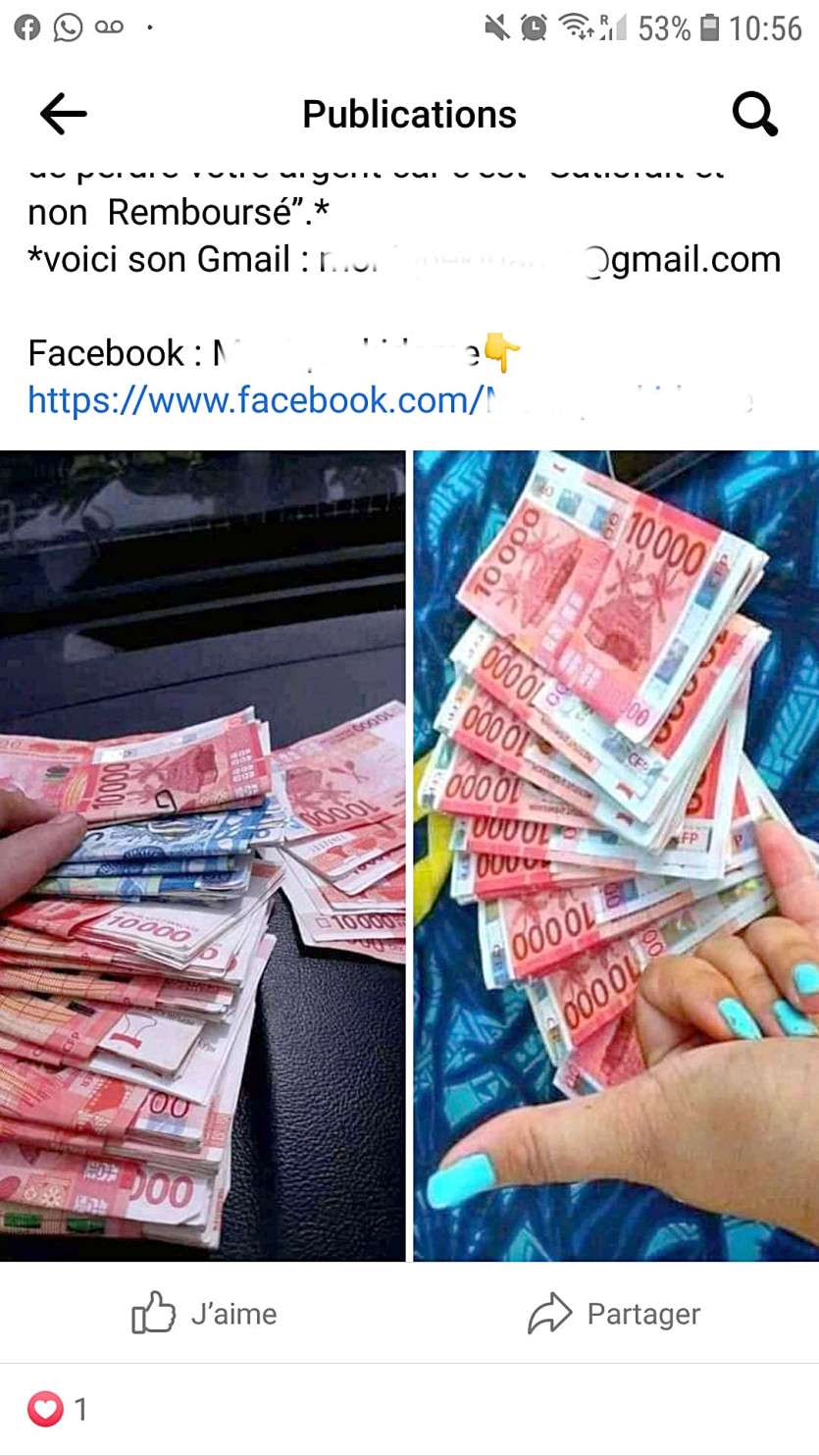 Concrètement, les escrocs créent des profils fictifs sur les réseaux sociaux et publient de faux témoignages dans lesquels ils expliquent qu’ils peuvent octroyer un crédit de plusieurs millions de francs, sous condition de verser des frais de dossier.