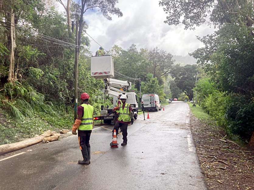 EEC et élagueurs en intervention à Yahoué pour rétablir les lignes. Photo Anthony Tejero