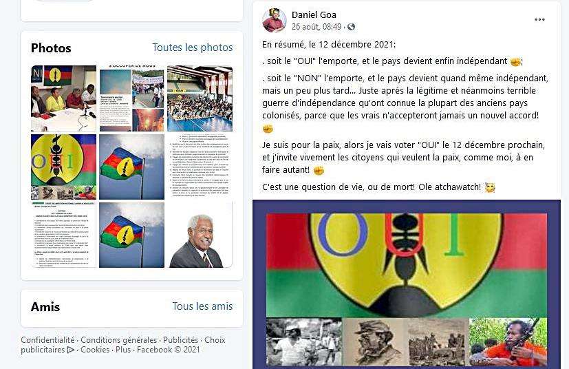 Un compte qui se présente comme celui de "Daniel Goa" a publié le 26 août des propos qui sèment le trouble sur les réseaux sociaux. Il y est question d’une "guerre d’indépendance" en cas de Non le 12 décembre.