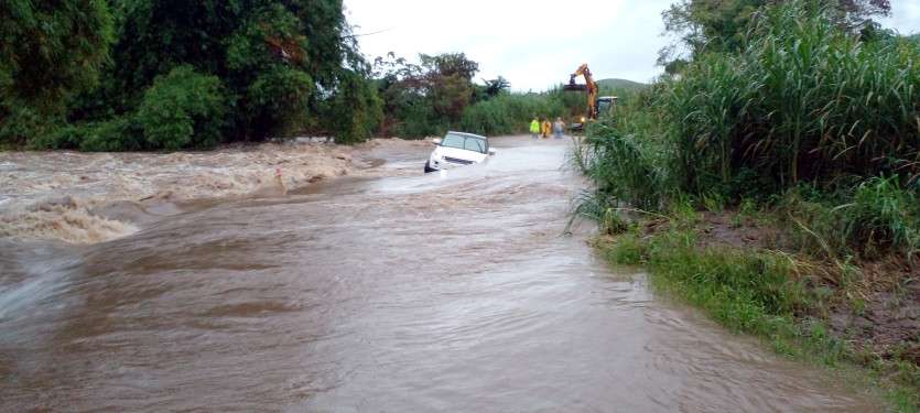 A Bourail, les pompiers ont dû intervenir à trois reprises samedi pour des véhicules restés bloqués par les inondations.