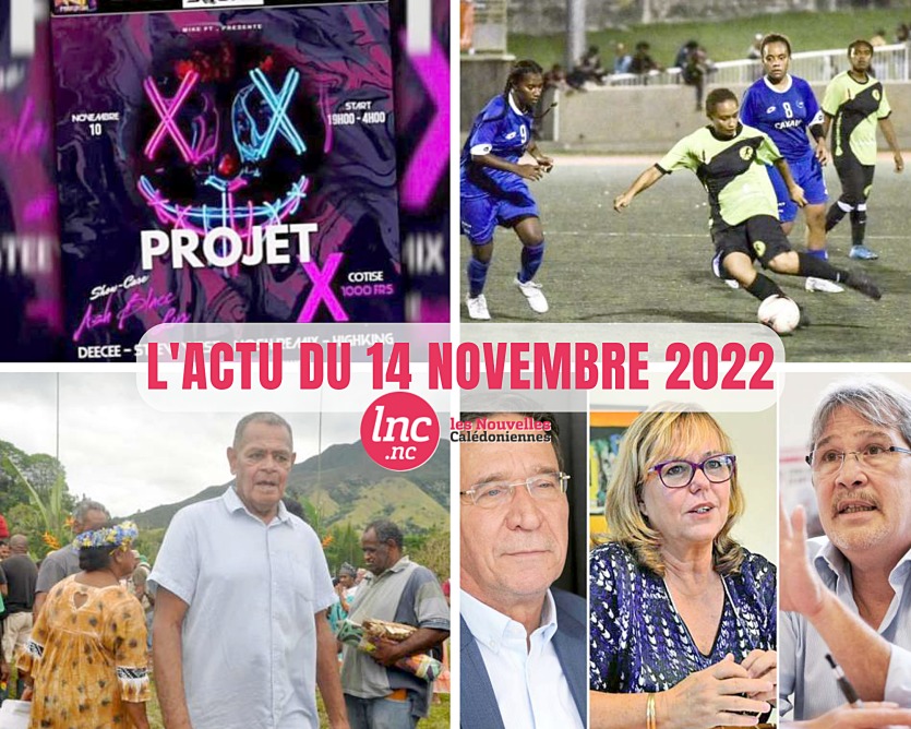 - | Crée le 13.11.2022 à 22h32 | Mis à jour le 14.11.2022 à 08h40ImprimerL'actu du 14 novembre 2022 Photo rédaction LNCEmplois fictifs à Calédonie ensemble, Daniel Goa réélu, un mineur de 16 ans interpellé suite à la soirée Projet X... Ce qu'il faut retenir de l'actualité de ce 14 novembre 2022.