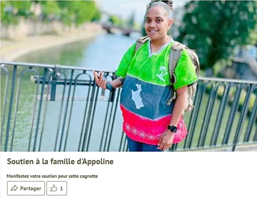 - Delphine Bossy | Crée le 12.06.2022 à 13h05 | Mis à jour le 12.06.2022 à 13h19ImprimerUne cagnotte Leetchi lancée pour soutenir la famille d’Appoline, la jeune militaire décédée à Colmar. Capture d'écran - Leetchi.comLa communauté du Pacifique ainsi que la communauté militaire du Régiment de Marche du Tchad ont ouvert une cagnotte en ligne Leetchi afin d’aider la famille de la jeune militaire.
