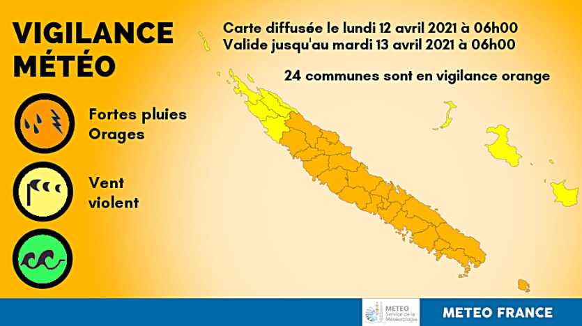 Accueil > Infos en direct > Nouvelle Calédonie > Faits divers > Vingt-quatre communes placées en vigilance orange