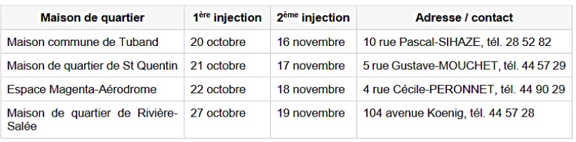 En parallèle, le vaccinodrome de l’hôtel de ville reste actif jusqu’au 29 octobre, du lundi au vendredi, de 8 heures à 16 heures.