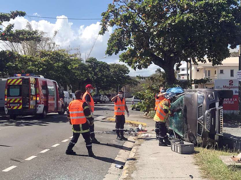 L’accident a été impressionnant. Une voiture s’est retrouvée sur le flanc.