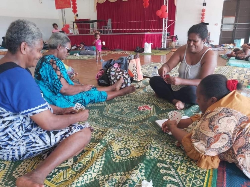 - A.-C.P et Edwige Blanchon | Crée le 06.03.2021 à 11h20 | Mis à jour le 06.03.2021 à 12h48ImprimerÀ Nouméa, Cynthia, Albertine, Estelle et Marguerite jouent à la belote pour faire passer le temps en attendant Niran. A.-C.PLes habitants du Grand Nouméa qui ne se sentaient pas en sécurité chez eux ont rejoint les différents centres d’accueil ouverts par les municipalités.
