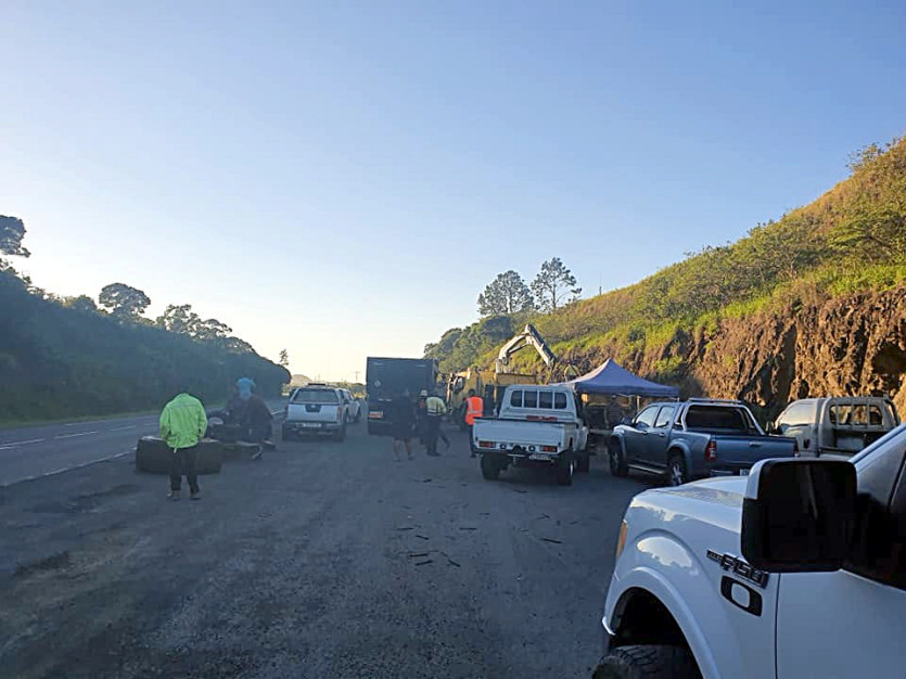 À Païta, la circulation est perturbée en direction de Nouméa et ne se fait que sur une seule voie à partir du pont de Païta Nord. Les manifestants ne bloquent pas totalement les automobiles, mais filtrent.