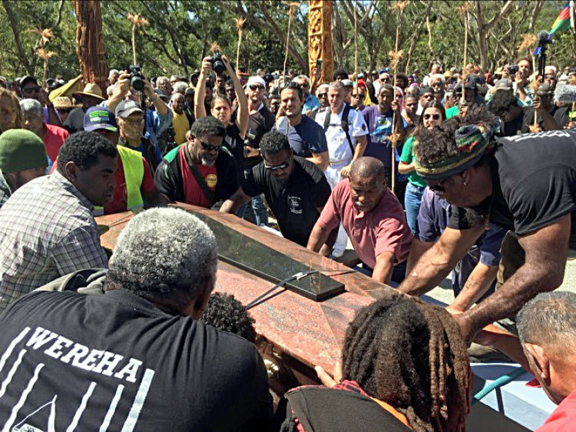 Sept ans après la restitution du crâne, les reliques du chef de guerre ainsi que celles de son compagnon Dao, sont inhumées mercredi matin à La Foa, sur le terrain de Fonwhary où est aménagé un site funéraire.