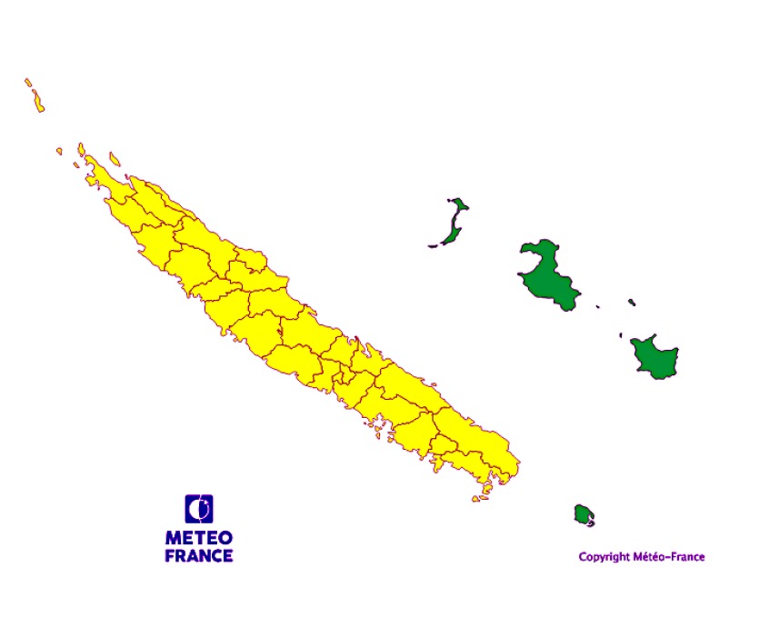 Météo France vient de placer l'ensemble de la Grande Terre et Bélep en vigilance jaune fortes pluies et orages. Des averses localement orageuses se produisent ce samedi soir sur le sud-est du Pays. Ailleurs, le ciel restera dégagé ou parfois voilé par des nuages d'altitude, puis deviendra plus nuageux sur l'extrême Nord avec des averses possibles en fin de nuit.