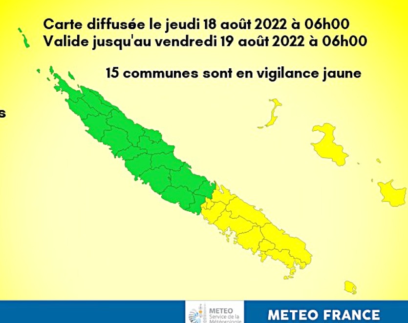 Dans les heures qui suivent, alors que "le beau temps revient sur la pointe Nord et le Nord-Est, sur les autres régions les nuages sont encore nombreux avec des averses de plus en plus éparses, mais qui restent parfois modérées sur les Loyauté et l’île des Pins, indique Météo France. Le vent s’oriente Sud à Sud-Ouest 10 à 15 noeuds sur la façade Ouest, et se maintient Ouest à Nord-Ouest 10 nœuds sur les Loyauté. La côte Est reste déventée avec localement des accélérations dans l’axe des vallées.