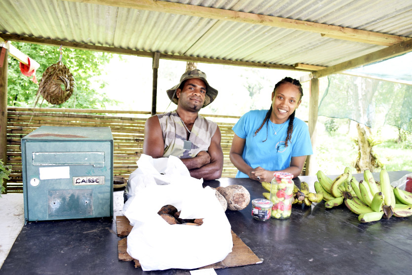 Quelques encablures plus loin, à Tiwaka, même constat chez Appolinaire et Ludivine, 23 ans, qui guettent patiemment l'arrivée d'éventuels clients. « On est surtout là pour surveiller le marché. Afin de ne plus perdre d'argent, on a changé la caisse en la remplaçant par une boîte à lettres qui ferme à clef, regrette ce jeune couple. Avant ce système, les vols étaient fréquents, plusieurs fois par an. Maintenant, ça concerne plus les fruits, les légumes et même les plantes. Ils ne volent pas les pots, mais ils cassent les fleurs et s'en vont avec. On sait que ce sont des gens de la vallée qui marchent au bord de la route. Ce n'est pas normal de devoir être méfiants, d'autant plus quand on se vole entre nous. On ressent de la colère car ces petits marchés sont la seule source de revenus de ceux qui n'ont pas de travail. »
