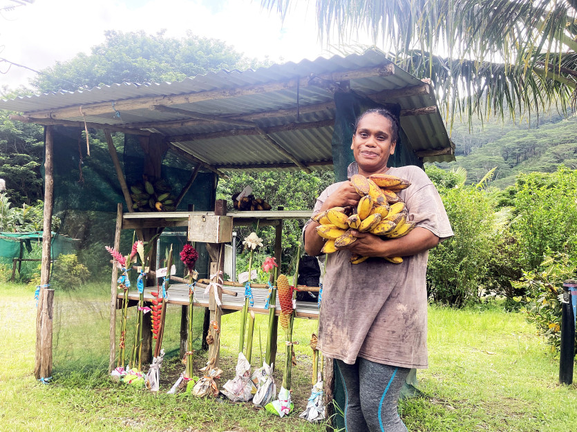 « Même si on ne gagne pas beaucoup d'argent, c'est déjà ça. On se contente du peu qu'on a. » Au détour d'un virage de la transversale, à la tribu de Pombéi, Davina tente d'attirer l'attention des automobilistes en dressant une rangée des plus belles fleurs de son jardin : des heliconias aux formes variées et aux couleurs éclatantes. Sur le comptoir, à l'abri d'un toit en tôles, trônent quelques régimes de bananes des plus vertes aux plus noires, qui finiront probablement données aux cochons si elles ne trouvent pas vite preneur. Un marché de bord de route comme il en existe des centaines, si ce n'est des milliers dans le pays et plus particulièrement sur la côte Est où ces petites constructions sommaires font désormais partie du paysage. Mais que rapportent-elles vraiment aux habitants des tribus ?