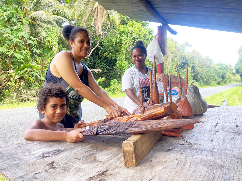 Si les denrées sont légion au fil de ces étals, certains préfèrent se spécialiser dans d'autres produits, au premier rang desquels l'artisanat. Comme en témoigne la famille Napoera, à la tribu de Paama, qui arbore fièrement ses flèches faîtières et cases en bois sculpté. « Nos créations dépendent essentiellement des visiteurs : les Métropolitains de passage dans la commune comme les infirmiers, les médecins ou les gendarmes, et les touristes qui veulent un souvenir du pays. Pendant la Covid, avec la fermeture des frontières, ça a été difficile. Depuis l'an dernier, ça repart tout doucement mais sûrement. En temps normal, ça marche bien. Notre foyer peut espérer tirer de ce marché environ 30 000 francs par mois. »