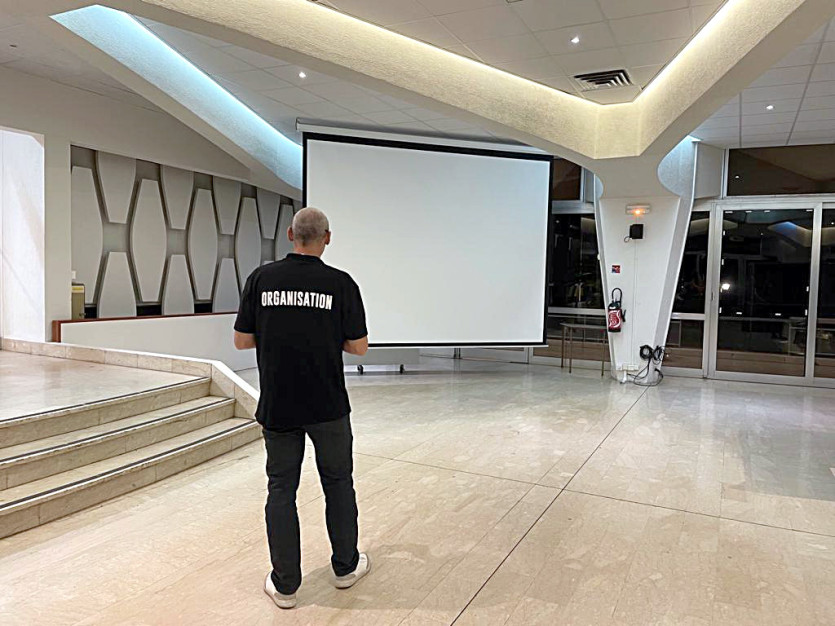 Un écran géant est installé pour l'annonce des résultats bureau par bureau.  Photo Julie Cateau