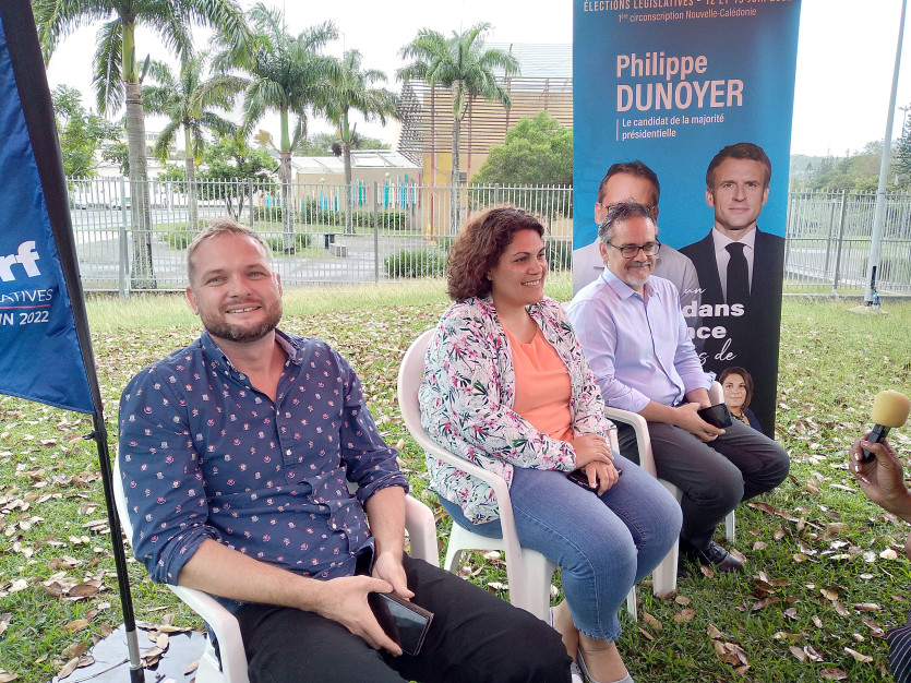 - B.B. | Crée le 16.06.2022 à 11h20 | Mis à jour le 16.06.2022 à 11h48ImprimerLes deux candidats d’Ensemble ! ont organisé une conférence de presse, jeudi 16 juin. Photo DRPhilippe Dunoyer et Nicolas Metzdorf, candidats de la majorité présidentielle dans les deux circonscriptions, ont animé une conférence de presse, jeudi 16 juin, au parc de Rivière-Salée, à Nouméa.