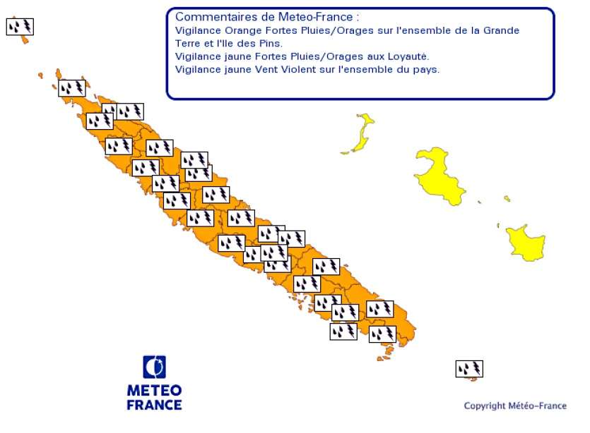 Bélep, l'île des Pins et toutes les communes de la Grande Terre sont placées en vigilance fortes pluies/orages.