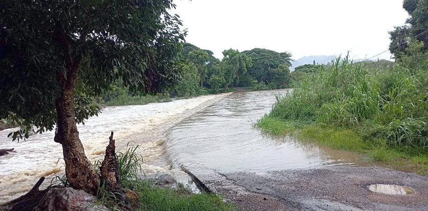 Le radier des grottes était déjà submergé, à Koumac, ce mardi matin. Photo Mairie de Koumac.MERCI DE VOUS IDENTIFIER