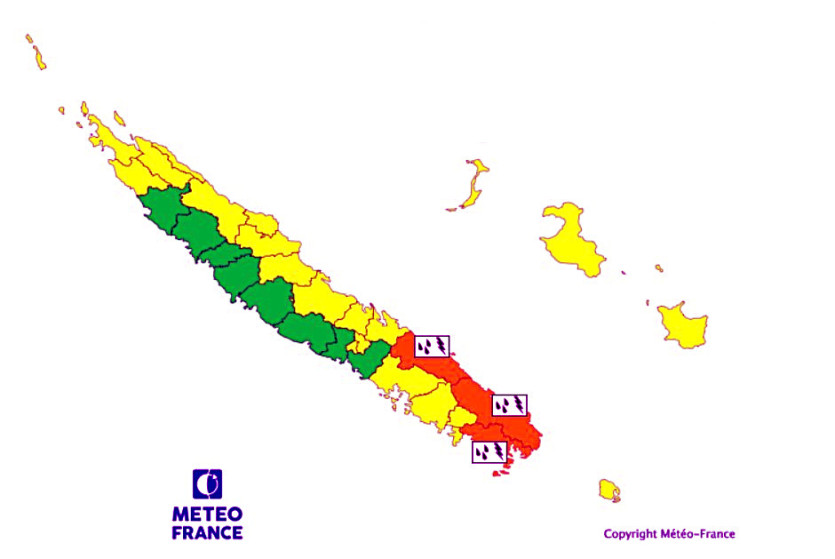 - Delphine Bossy | Crée le 26.02.2022 à 10h20 | Mis à jour le 26.02.2022 à 10h20ImprimerMétéo France NC place en alerte orange trois communes. Photo Météo France NCIl faut se montrer très vigilant dans les communes de Yaté, Mont-Dore et Thio.