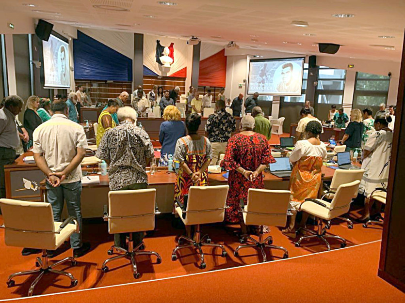 - Jean-Frédéric Gallo | Crée le 10.01.2023 à 10h30 | Mis à jour le 10.01.2023 à 10h39ImprimerL'assemblée a observé une minute de silence en mémoire de Marc Kanyan. Photo Jean-Frédéric GalloLe sujet du transfert du financement de l'aide médicale gratuite des provinces vers le gouvernement avait donné lieu à une passe d’arme entre les élus de Calédonie ensemble et ceux de la confédération les Loyalistes.